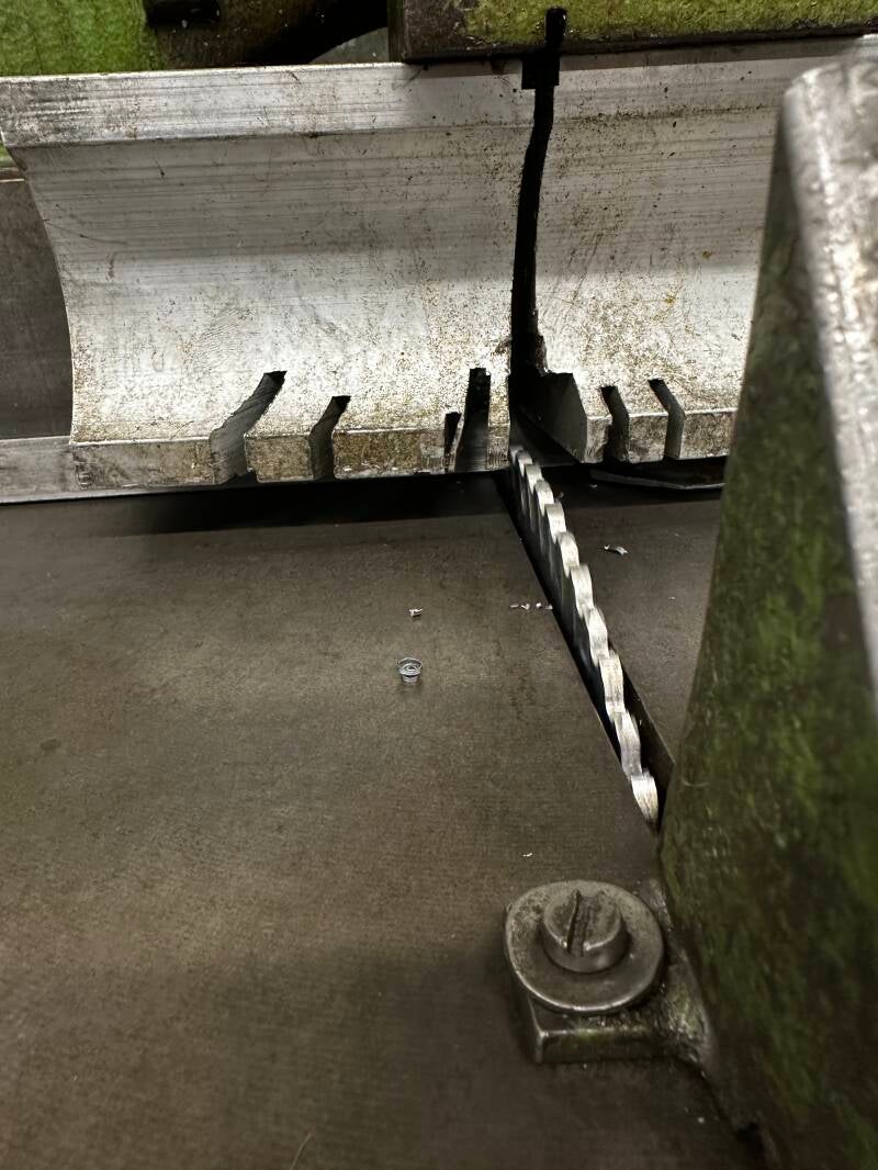 Wir entschieden uns für ein Winkelprofil aus Stahl. Ich habe eine CAD-Skizze der benötigten Winkelprofile angefertigt. Anschließend habe ich die benötigten Winkelprofile mit der Kaltenbach-Kreissäge auf die erforderliche Länge abgesägt. Um die Winkel auf dem Schrank befestigen zu können, wurden anschließend an den davor vorgesehenen Stellen zwei Löcher gebohrt, eines dieser Löcher erhielt zur Befestigung der Aluprofilleisten noch ein M3 Gewinde.